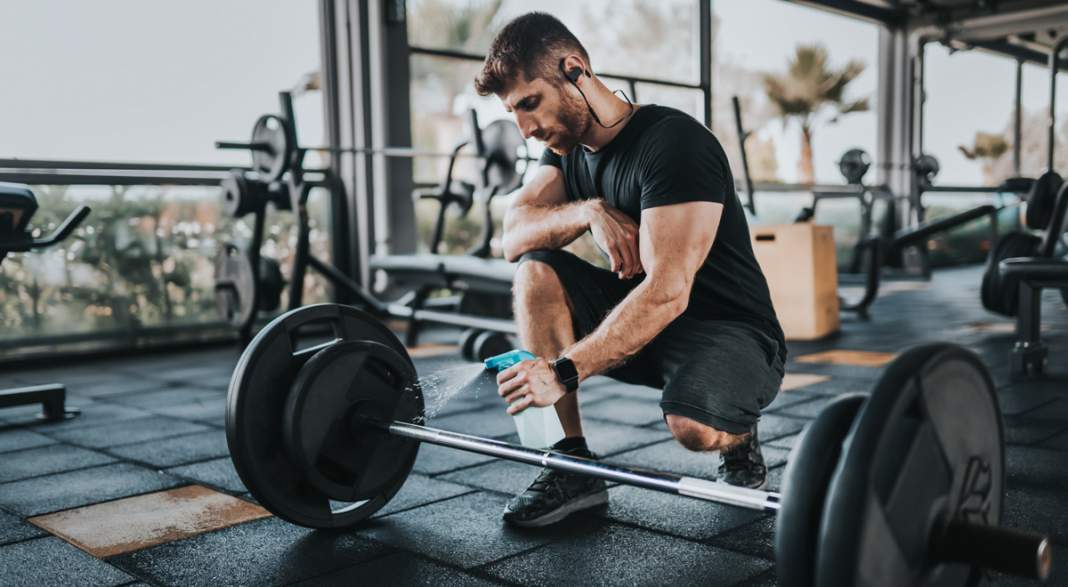 - Προαιρετικά θα μπορούσες να χρησιμοποιήσεις ένα αντισηπτικό σπρέϊ για να απολυμαίνεις την λαβή του αλτήρα ή της μπάρας πριν και μετά την χρήση τους.