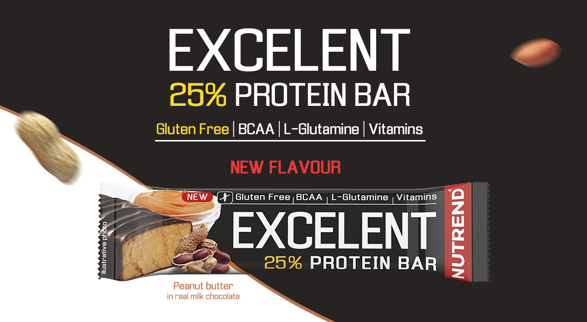 Η Excelent Protein bar είναι εμπλουτισμένη με φρούτα ή ξηρούς καρπούς και καλύπτεται από μια στρώση σοκολάτας ή γιαουρτιού.Περιέχει 24% καθαρής και υψηλής ποιότητας πρωτεΐνης και 43% απλών και σύνθετων υδατανθράκων.