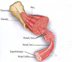 Ο σκελετικός μυς αποτελείται από μυικές δεσμίδες οι οποίες είναι πολλές μυικές ίνες ενωμένες, ενώ οι μυικές ίνες αποτελούνται από τα μυικά ινίδια.
