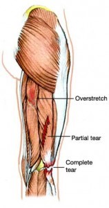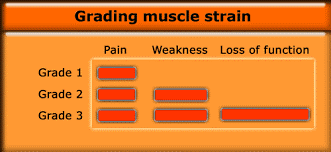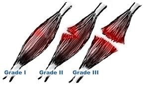 1ου Βαθμού: Διάταση των μυικών ινών με αποτέλεσμα τον πόνο και μικρή εκχύμωση στην περιοχή (αιμάτωμα). Ο βαθμός αυτός είναι γνωστός και ως “μυικό τράβηγμα΄΄.