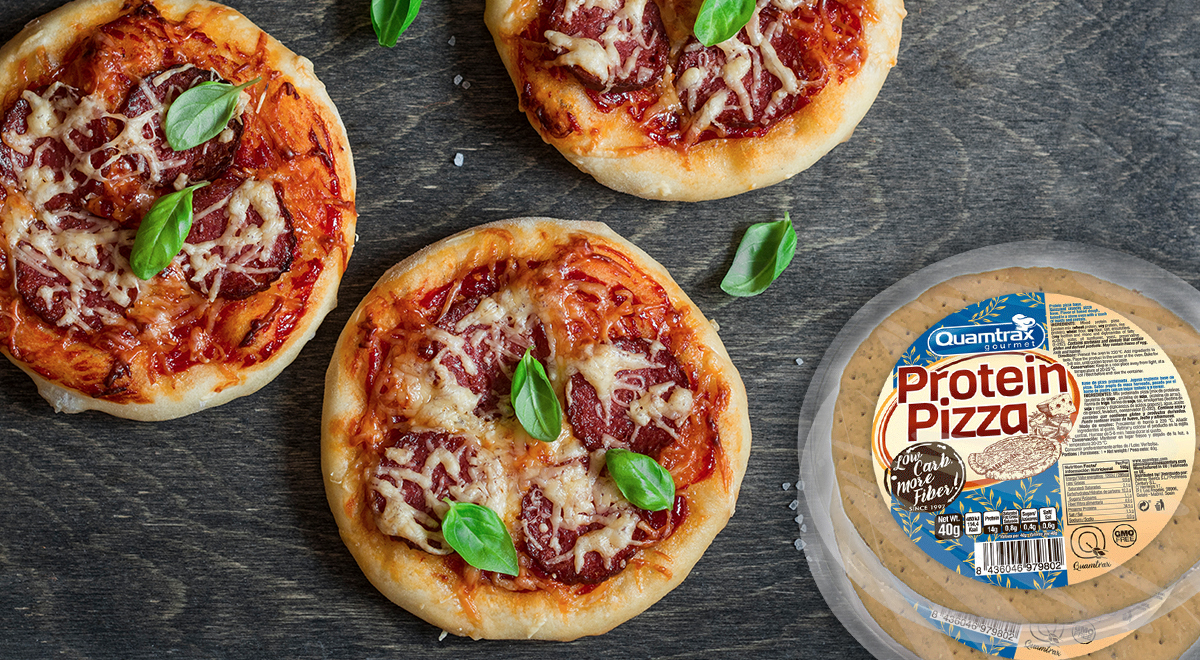 Η νέα πρωτεϊνική βάση για πίτσα της Quamtrax είναι ζουμερή και τραγανή ταυτόχρονα, φτιαγμένη από πρωτεΐνη σιταριού, σόγιας και ρυζιού. Είναι ιδιαίτερα χαμηλή σε κορεσμένα λιπαρά και σάκχαρα αλλά υψηλή σε πρωτεΐνη, ιδανική για διατήρησης της σωστής διατροφής ενός αθλητή. Διατηρεί την υπέροχη γεύση της κλασσικής πίτσας, τώρα όμως μπορείτε να την απολαύσετε χωρίς περιορισμούς και τύψεις, ενώ μπορείτε να την συνδυάσετε με τα υλικά της επιλογής σας και την αντίστοιχη Tomato sauce της Quamtrax.